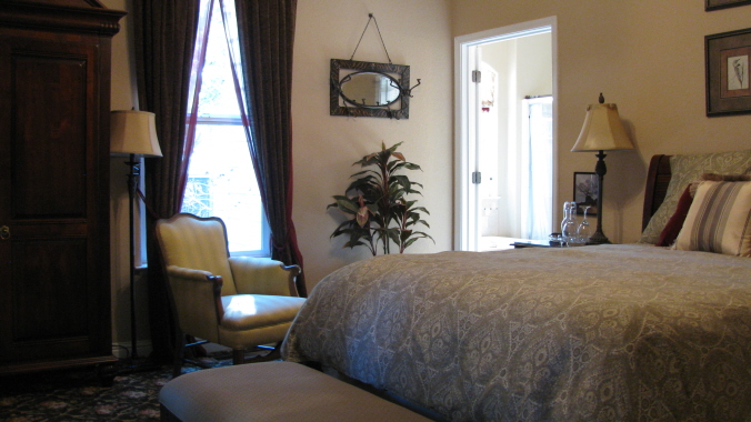 tub-shower combination 2nd floor front corner room overlooks majestic Sequoias, side lawn, arbor |