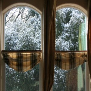 tub-shower combination 2nd floor corner room overlooks majestic Sequoias, side lawn, arbor |
